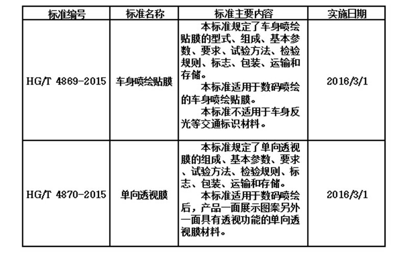 Shanghai Nar Digital Printing Material Co., Ltd., como primera unidad de dibujo, ha compilado\"Película de impresión de carrocería\" (HG / T 4869-2015) y\"Película de perspectiva unidireccional\" (HG / T 4870-2015) Las dos normas de la industria fueron aprobadas por el Ministerio de Industria y Tecnología de la Información el 10 de octubre de 2015 y se implementaron oficialmente el 1 de marzo de 2016.
